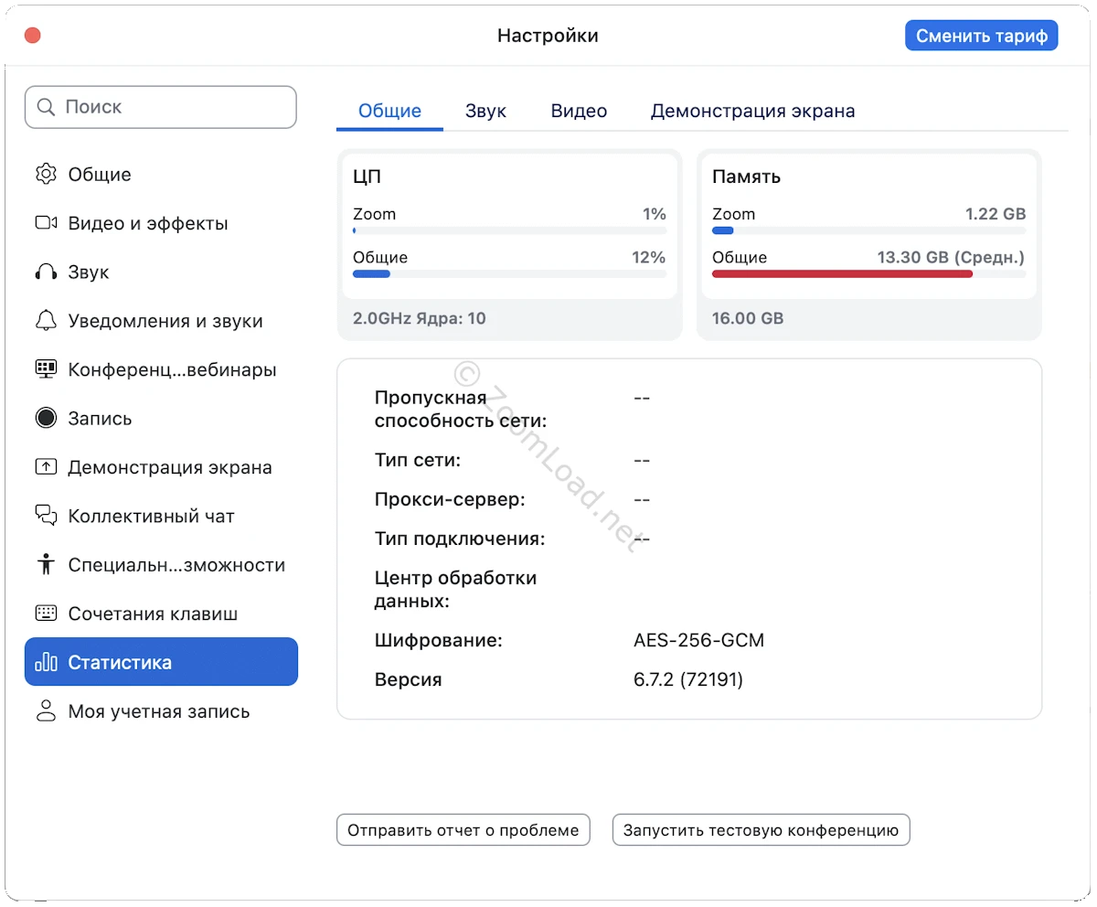 - Использование оперативной памяти Zoom и всей системы вашего Мака;