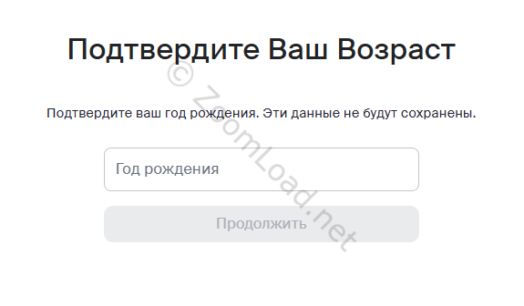 - В первую очередь введите ваш год рождения для подтверждения возраста.